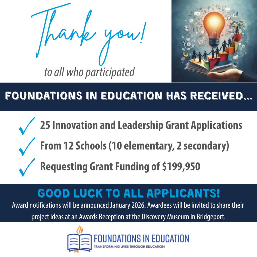 This is our busy time of year! Our grants application cycle closed on October 31st and we are excited to announce that Foundations In Education, Inc. received 25 Innovation & Leadership applications from